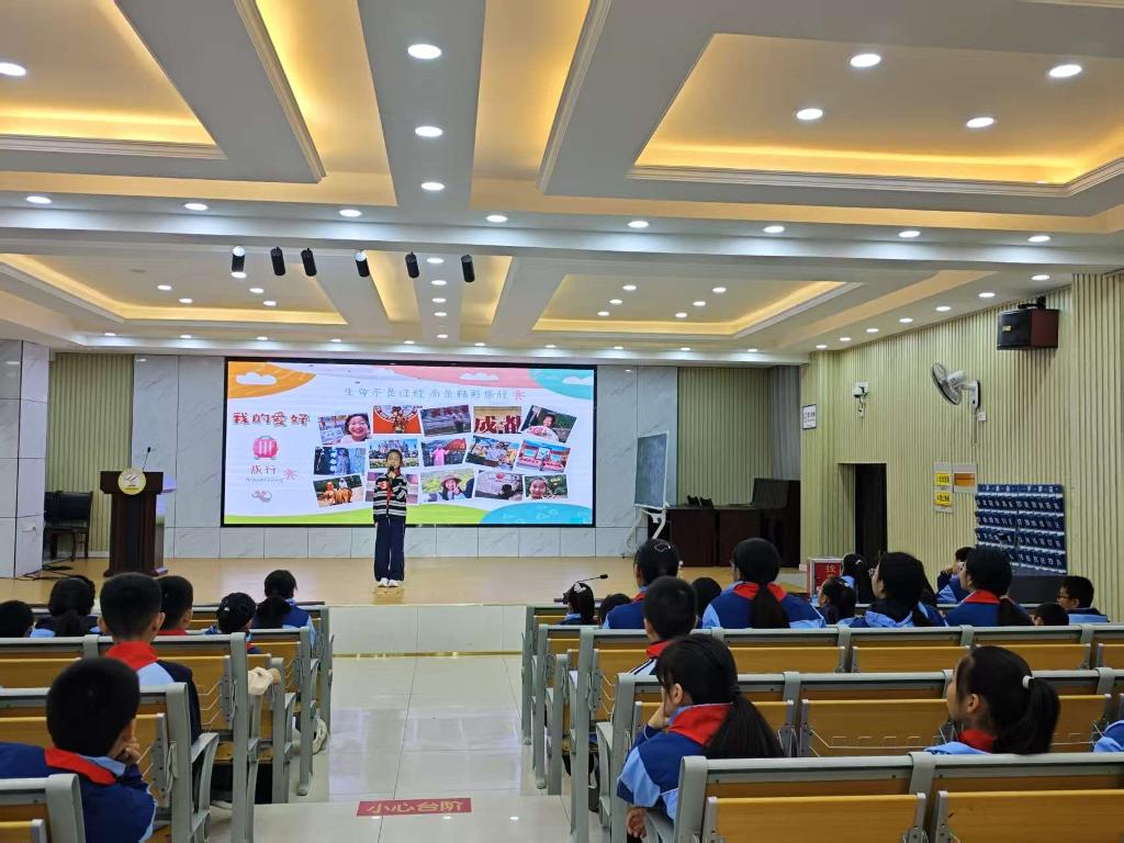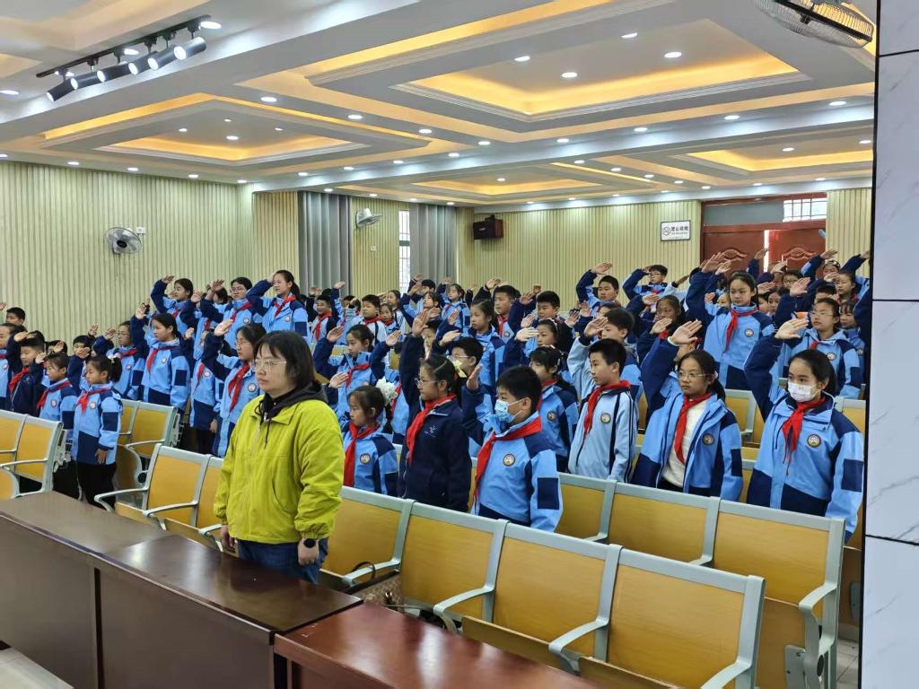 伴随着激昂的《中国少年先锋队队歌》,来自各班的少先队员代表身着整齐的校服,佩戴鲜艳的红领巾向队旗敬礼,他们稚嫩的脸庞上洋溢着坚定与自豪,会场氛围庄重而热烈。